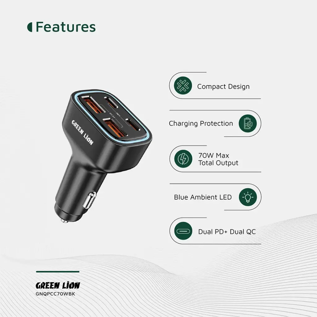 Green Lion Quad Port 70W Car Charger